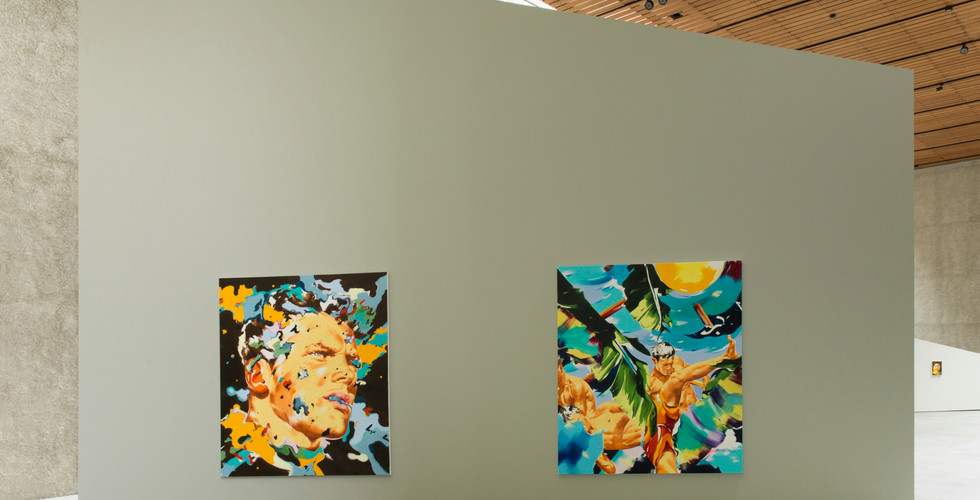 Norbert Bisky makes predominantly large-scale works that render chaos, violence and destruction in bold intense colours and soft pastel tones against a blue backdrop. Deprived of solid ground, often fragmented human figures hurtle wildly through the pictorial space along with architectural ruins, colliding with abstract planes of colour and destructive blazes.Born in Leipzig in 1970, Norbert Bisky is one of the most renowned Germanpainters of his generation.